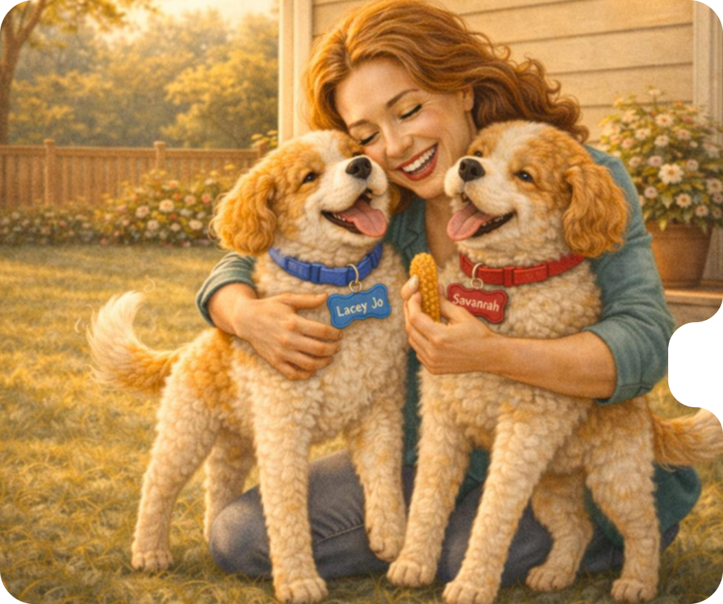 Step into a charming little yellow house where two Goldendoodle sisters, Lacey Jo and Savannah, share a world full of joy, mischief, and unconditional love. Their story celebrates sisterhood, family, and the magical bond between two furry best friends.
